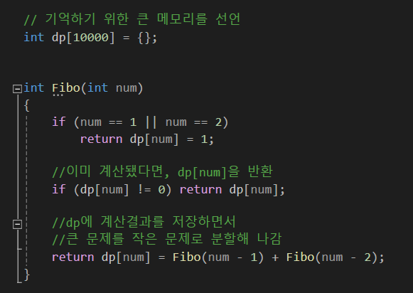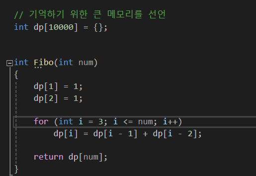 위 피보나치 수열을 DP 형식으로 풀어내면 다음과 같습니다.