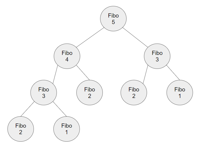 피보나치 수열 알고리즘을 재귀 함수로 표현한 경우를 상태 트리로 나타내면 위와 같습니다.