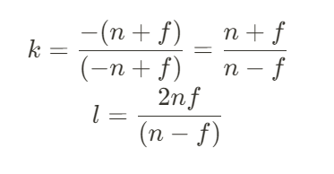 근평면의 점을 P1, 원평면의 점을 P2라고 할 떄 이들은 다음과 같이 계산된다.