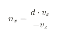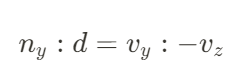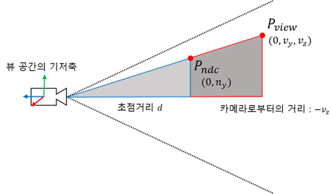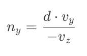이로써 투영 평면의 y값 n_y 는 다음 식으로 얻을 수 있다.
