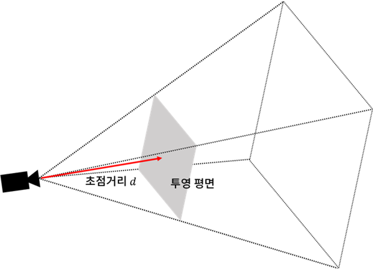 카메라부터 투영 평면까지의 거리를 초점 거리라고 한다.
