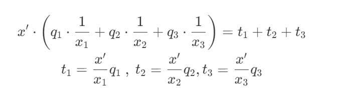 양변에 x'를 곱하면 다음의 수식으로 전개된다.