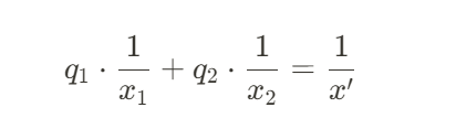 y축의 무게중심좌표 (q1, q2) 는 다음과 같은 수식이 성립한다.