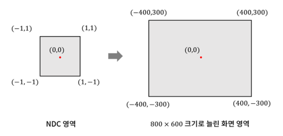 NDC 좌표를 화면 해상도만큼 가로와 세로를 늘려주면 최종 스크린 좌표가 완성된다.