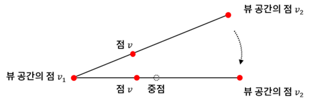 무게중심을 이용하여 보간하는 방식을 현재 원근 변환 행렬과 사용하면 오류가 발생하게 된다.