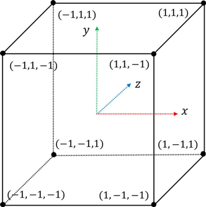 2차원 평면이었던 NDC 영역에 깊이 값을 추가하면 3차원으로 NDC 영역이 확장된다. 깊이 값의 범위는 동일하게 [-1, 1]로 설정한다.