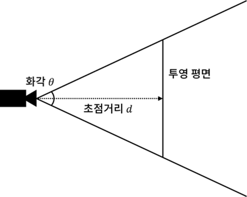 즉, 화각은 사각뿔 영역의 크기를 담당한다고 볼 수 있다.