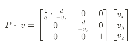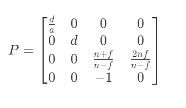 다른 행렬과의 곱을 위해서 4차원으로 확장하면 위와 같은 원근 투영 행렬을 얻을 수 있다.