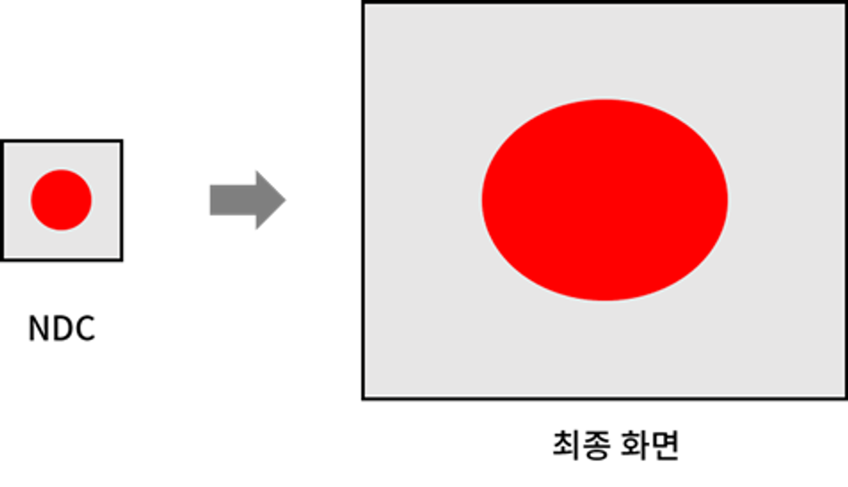 이 문제를 해결하는 방법은 화면의 종횡비를 미리 파악해, NDC 영역에서 미리 찌그러트린 후에 펼치는 것이다.