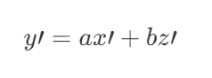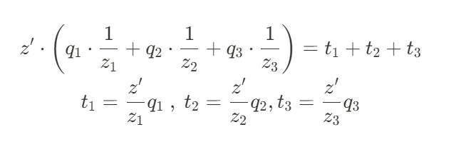이 식의 양변에 z' 를 곱하면 상수가 사라지고 세 미지수의 차수가 모두 1차식으로 동일한 수식이 구성된다.