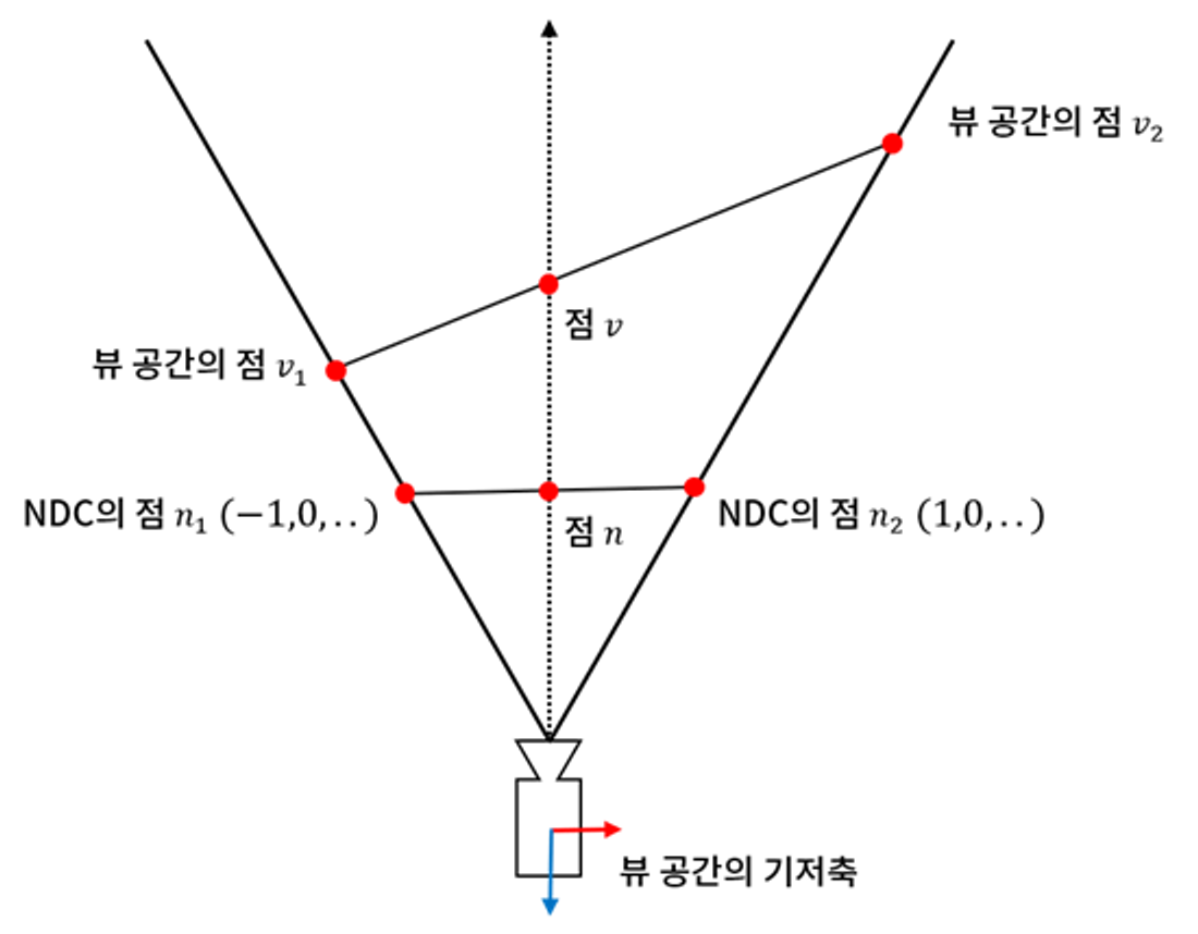 뷰 공간의 값은 x축이라고 할 수 있고, NDC 공간의 값은 y축이라고 할 수 있다.