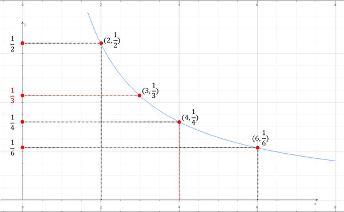 NDC의 무게중심좌표를 사영 공간의 무게중심좌표로 돌려주는 투영 보정 보간의 계산식을 유도하기 위해서는 y = 1/x 가 가진 성질을 살펴봐야 한다.