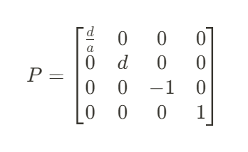 첫 번째 연산에서는 원근 투영 행렬 P를 위와같이 변형하여 봐 좌표계의 점에 곱해준다.