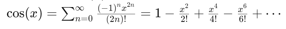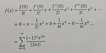 따라서 cos 함수의 매클로린 급수 또한 유효하다.