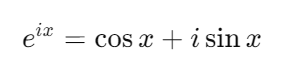 무리수 e와 허수 단위 i, 그리고 삼각함수와의 관계를 이용해 나타낸 오일러 공식은 다음과 같다.