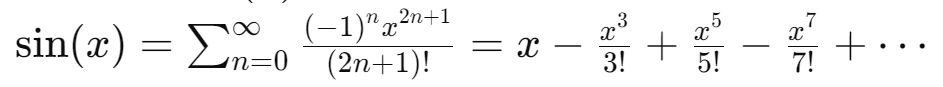 sin 함수의 매클로린 급수 또한 유효하다.
