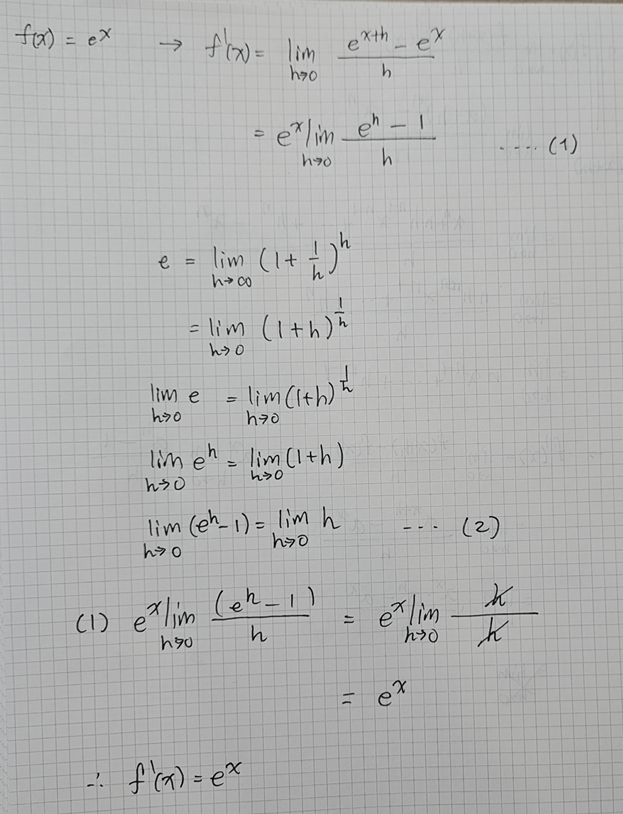 4. 지수함수 f(x) = e^x 의 도함수가 왜 f'(x) = e^x 인가?