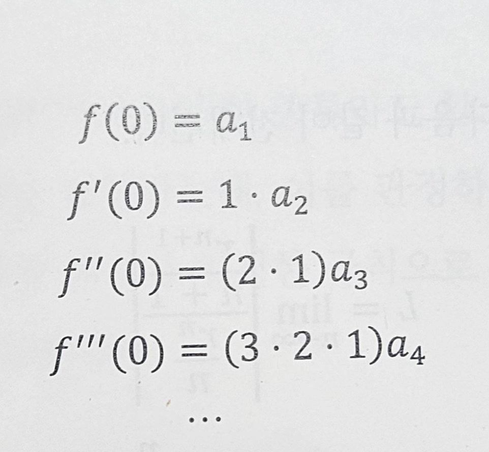 그러면 이를 멱급수의 계수에 대해서 정리하면 다음과 같다.