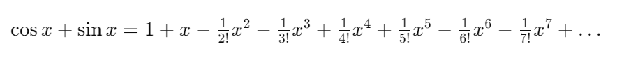 sinx 함수와 cos 함수의 매클로린 급수를 합하면 다음과 같다.