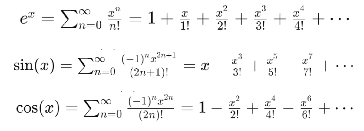 자연지수함수, sin, cos 함수의 테일러 급수 꼴 정리