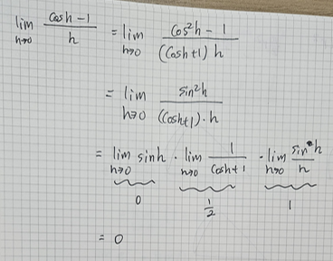 여기서 하나 더 삼각함수의 미분값을 얻어내기위한 극한값이 있는 데 바로 아래와 같다.
