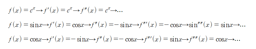 여기서 무한 미분가능이란, 말그대로 무한하게 미분이 가능한 함수를 뜻하며, 대표적인 무한미분 함수는 아래와 같다.
