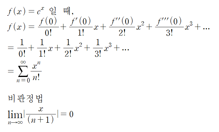 자연지수함수는 매클로린 급수로 표현이 가능하다.