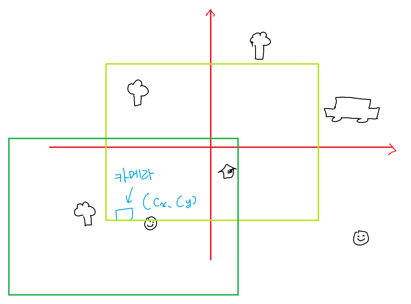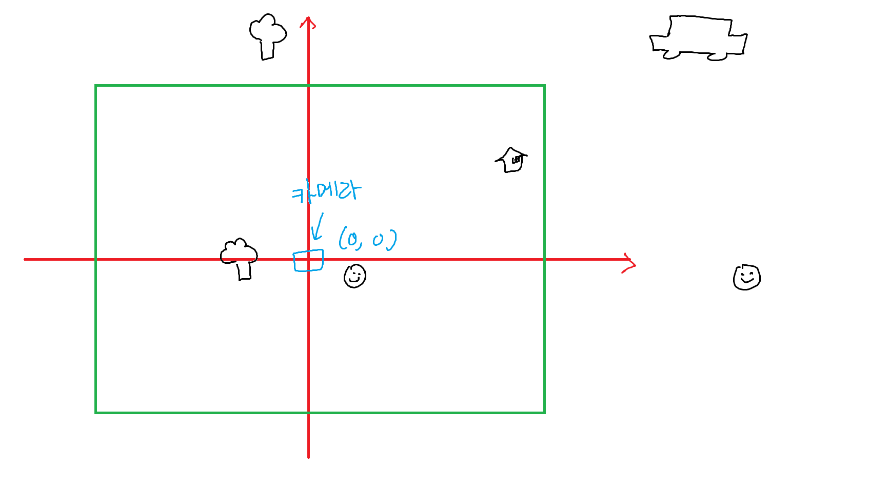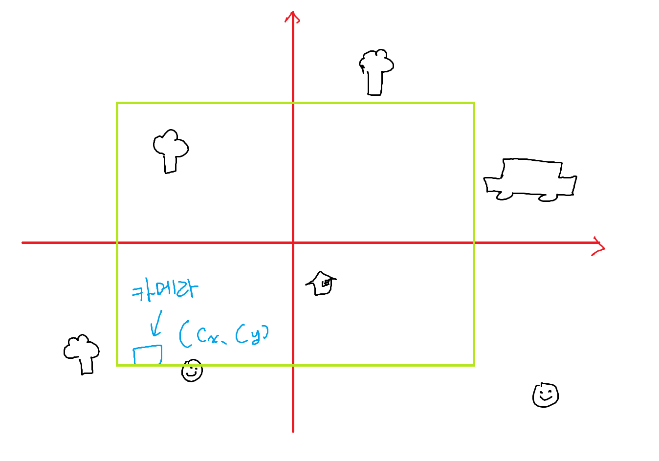 진한 초록색 사각형을 카메라 뷰라고 하겠습니다.