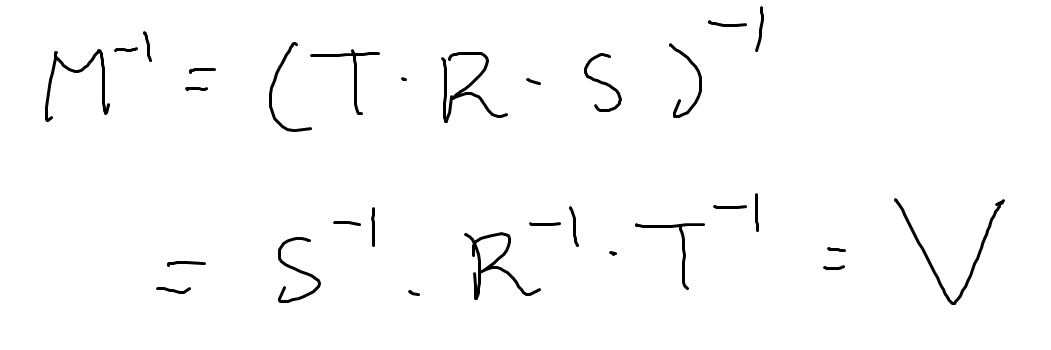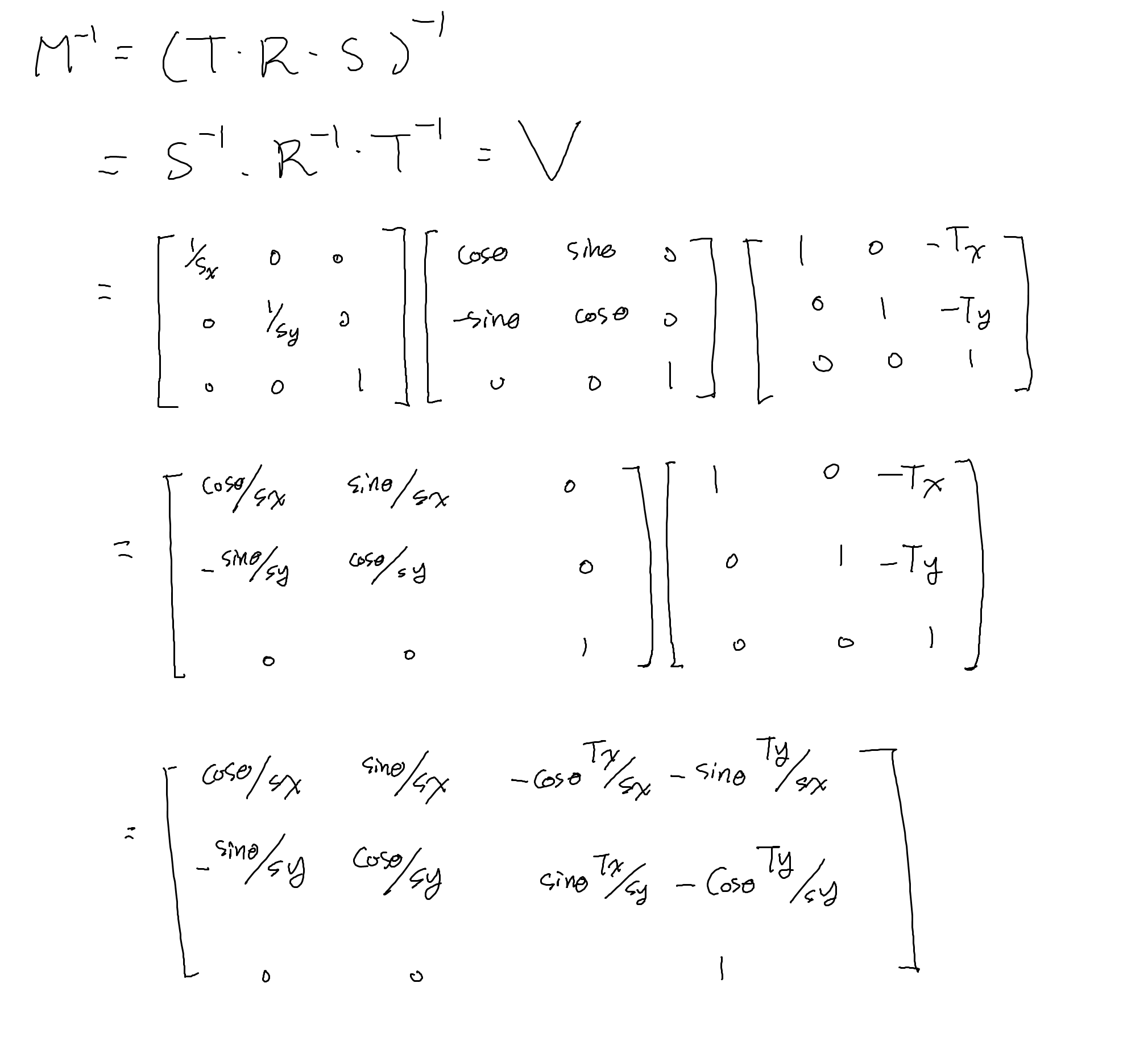 크기, 회전, 이동 변환의 역행렬은 매우 구하기 쉽습니다.