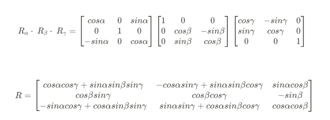 4. 위 세 행렬을 곱하면 최종적인 회전 행렬을 얻어낼 수 있습니다.