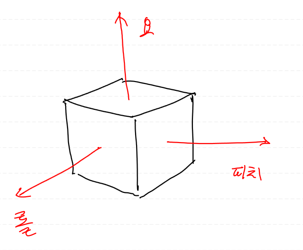 2. 편의상 (1, 0, 0)을 피치(pitch), (0, 1, 0) 요(yaw), (0, 0, 1) 롤(roll) 이라고 부른다.