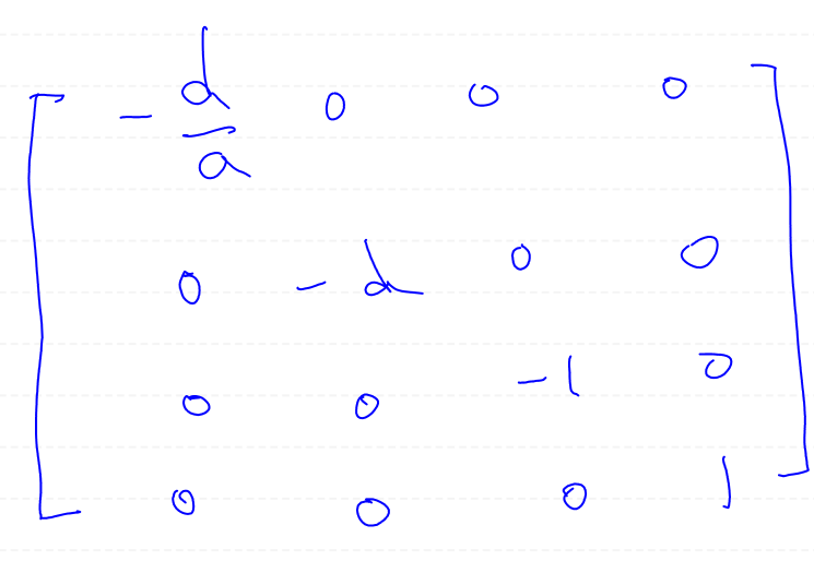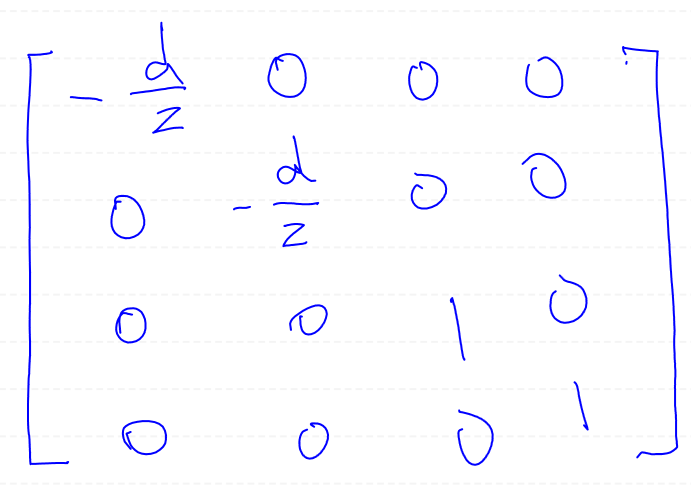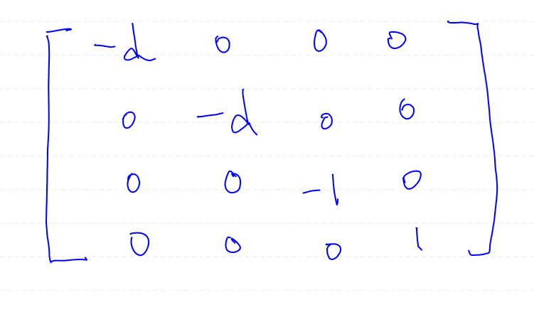 d값은 상수인데, z값은 정점마다 다르기 때문에 10000개의 다른 정점이 존재한다면, 10000개의 다른 원근 투영 행렬이 필요합니다.