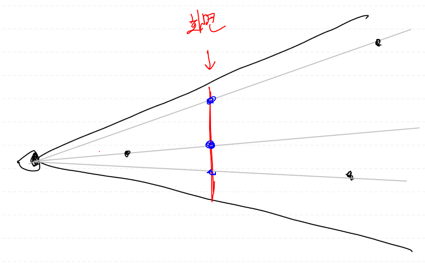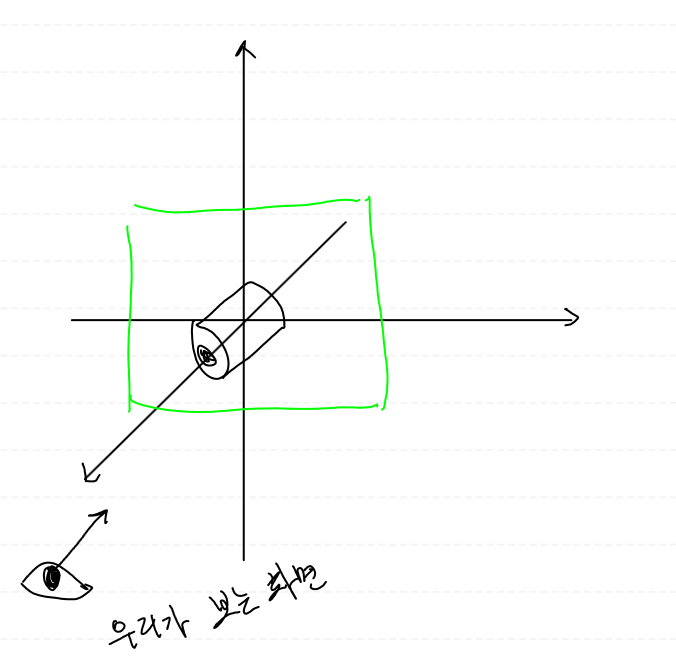 이런 식으로 투사체와 눈사이 무한한 거리의 가상의 선이 존재하고,