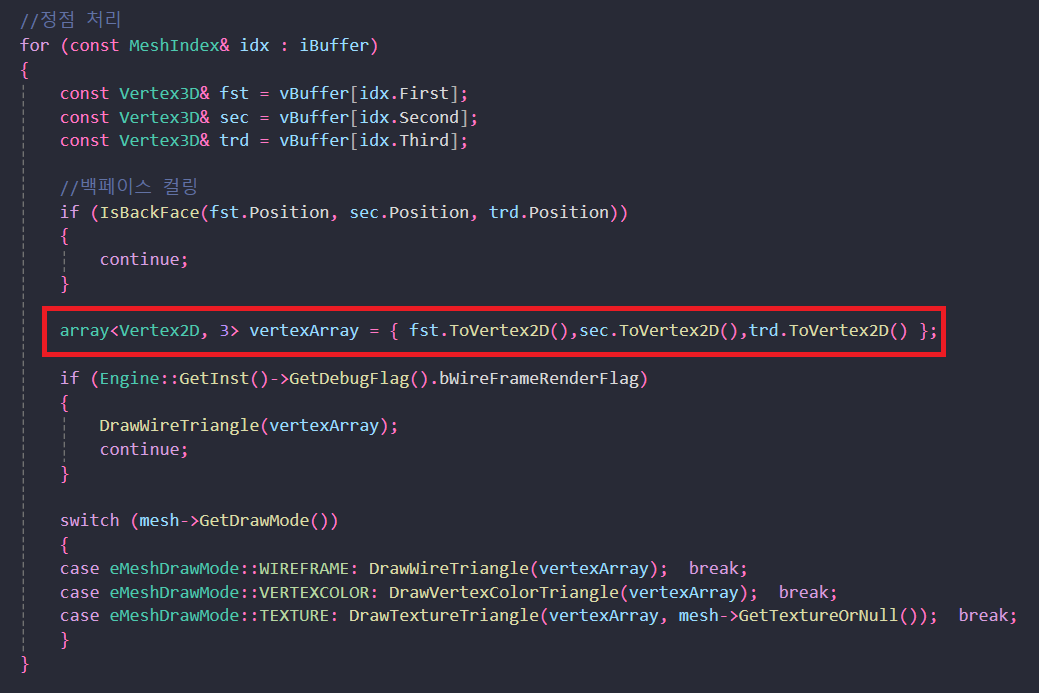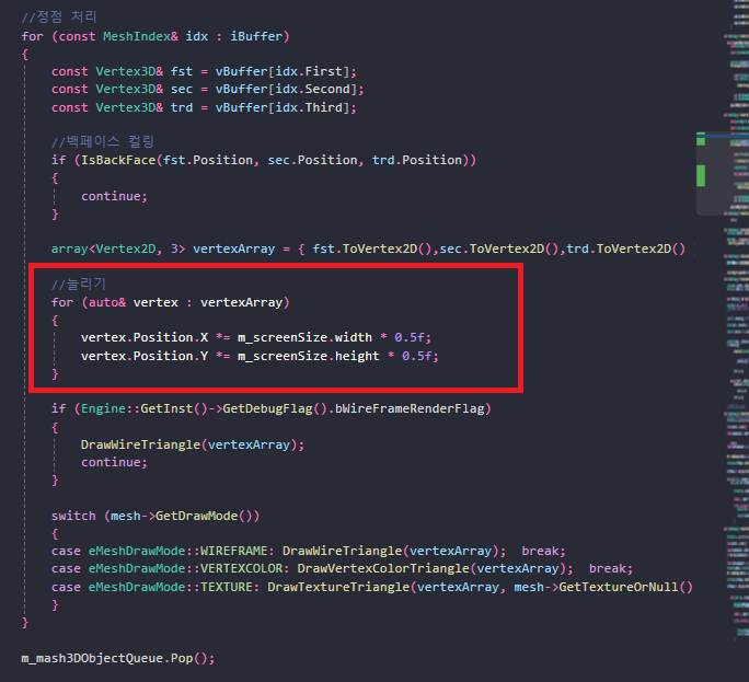 를 연산해주면, 정점이 적절하게 변환될 것 같습니다.