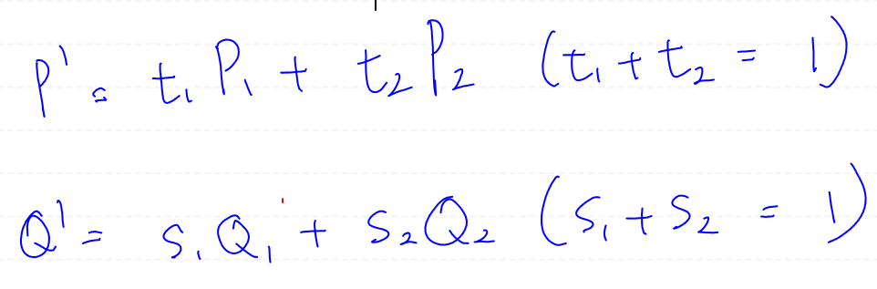 컨벡스 결합 식에 의해, 계수의 합은 1입니다.