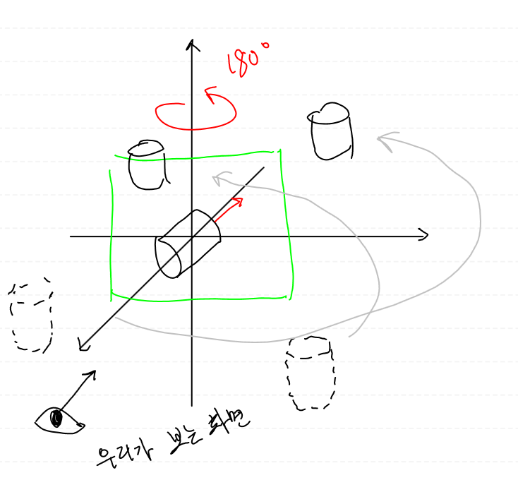 앞서 월드를 y축을 기준으로 180' 회전시킨것을 기억할 것입니다.