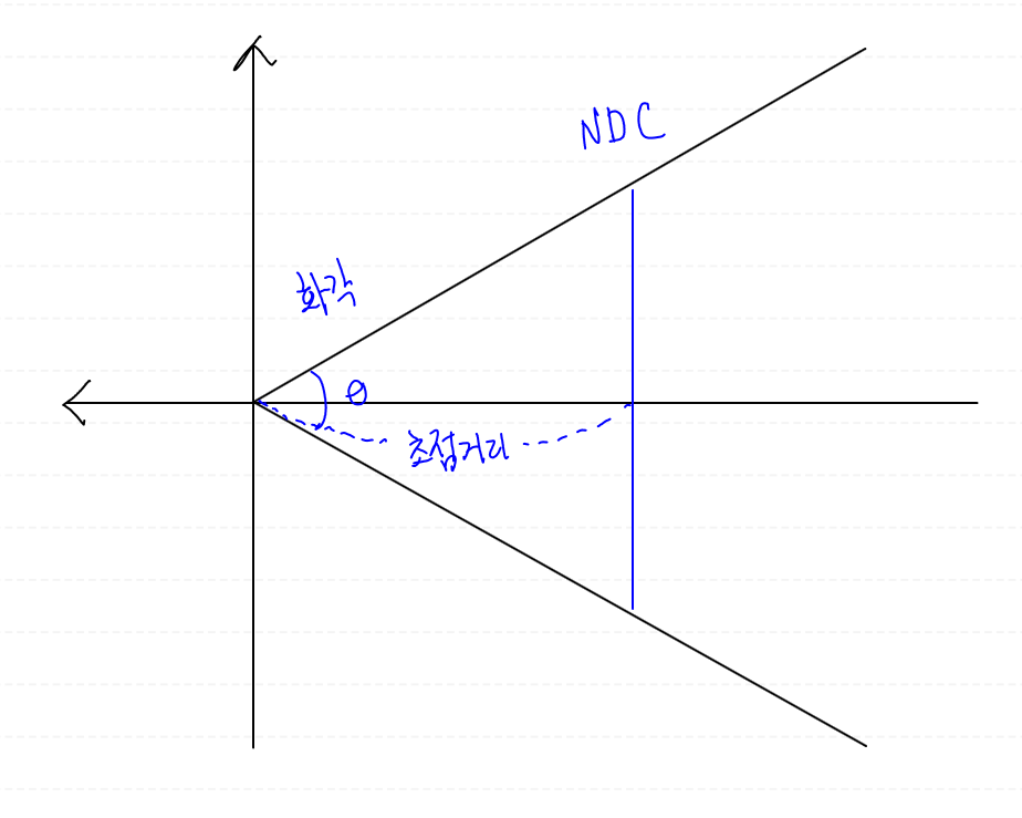 그리고 카메라와 NDC 사이의 거리를 '초점거리' 라고 표현합니다.