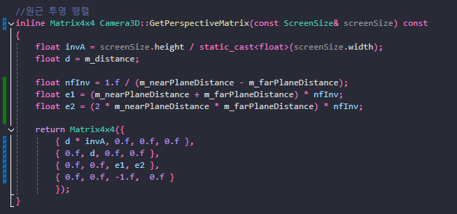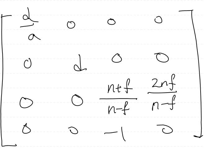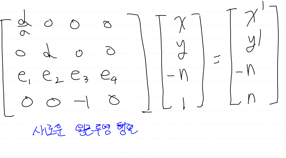 최종적인 원근 투영 + 깊이 처리 행렬을 만들었습니다.
