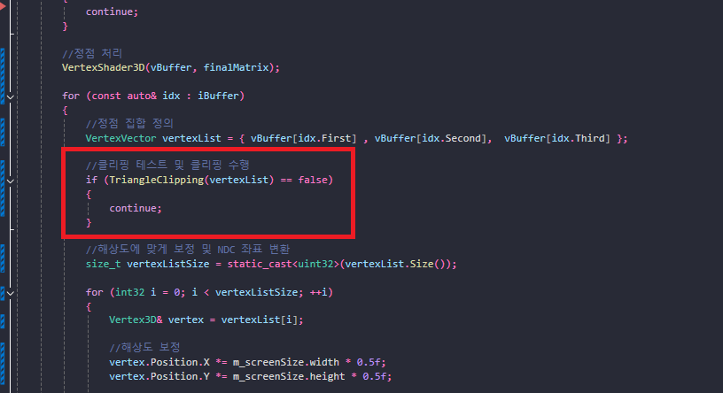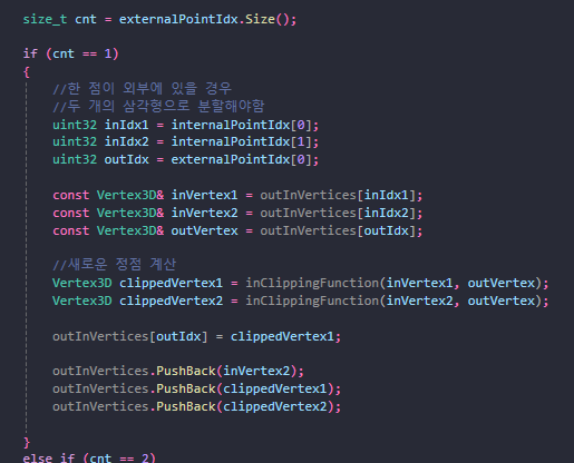 이를 토대로 삼각형 클리핑하는 함수를 작성해보겠습니다.