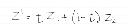 점P1과 점P2사이에 존재하는 점P'2는 컨벡스 결합식으로 찾을 수 있습니다.