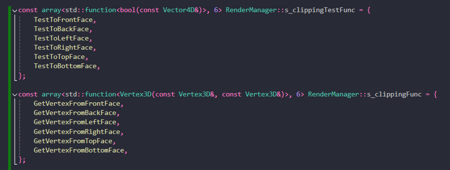 가시부피는 6개의 평면으로 이루어져있기 때문에, 동일한 방법으로 총 6개의 정점 계산 함수를 만들어줍니다.