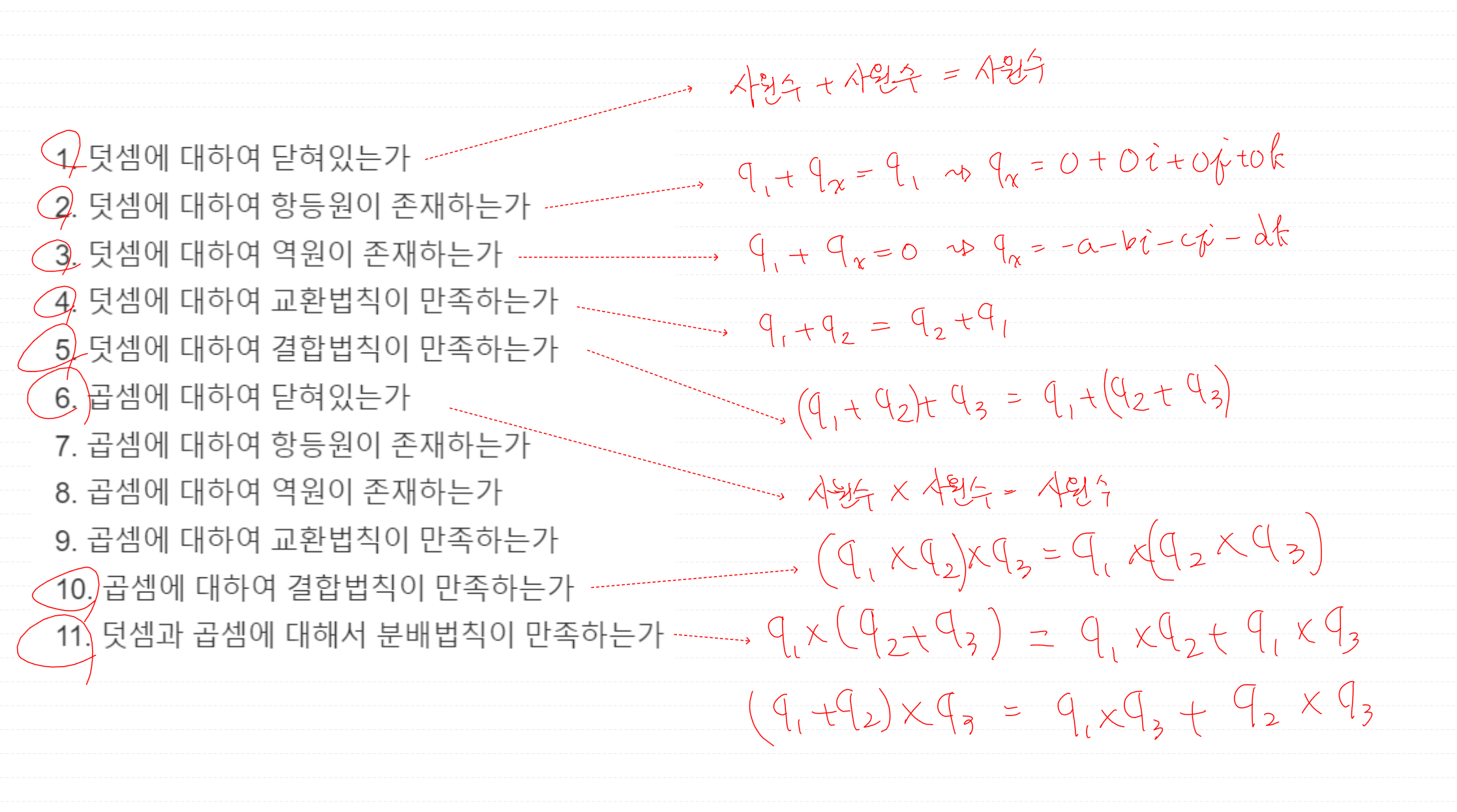즉, 사원수의 곱셈은 교환법칙을 만족하지 않습니다.