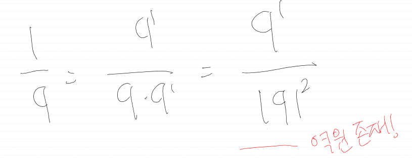 마지막으로 사원수의 곱셈 역원의 존재를 확인해보겠습니다.