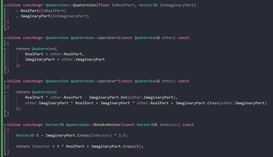사원수 덧셈, 사원수 곱셈, 벡터 회전 함수를 담고있는