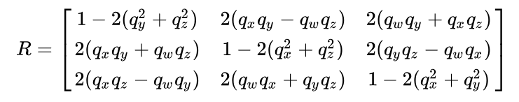 이렇게 회전 사원수 q를 얻어낼 수 있습니다.