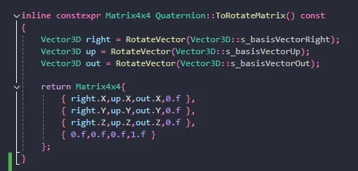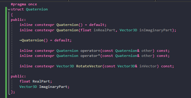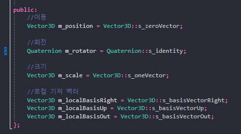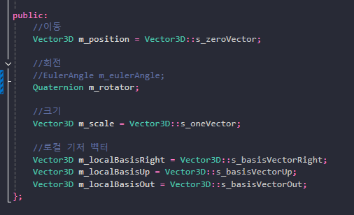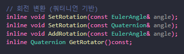 이제 쿼터니언 구조체를 변환 클래스에 넣어줍니다.