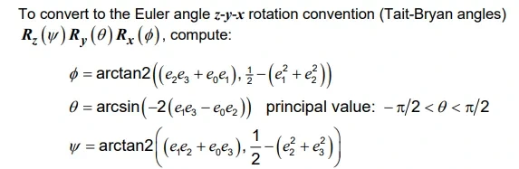 오일러 공식과 회전 사원수간의 관계식을 만들 수 있습니다.
