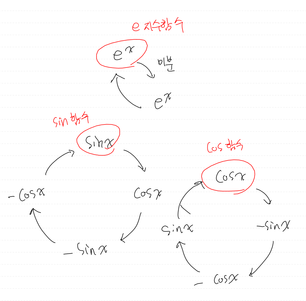 cos, sin, e지수함수 간의 관계식을 세울 수 있을 것 같습니다.