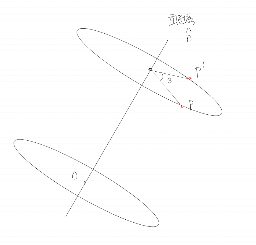 P을 세타만큼 회전시키는 작업을 그림으로 나타내면 뒤와 같을 겁니다.