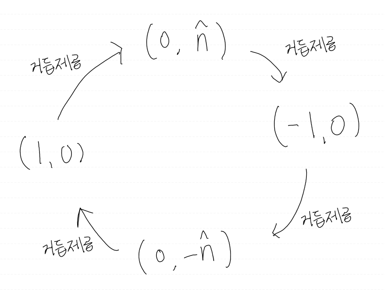 그런데 허수부에는 교환법칙이 적용되지 않는 외적이 존재합니다.